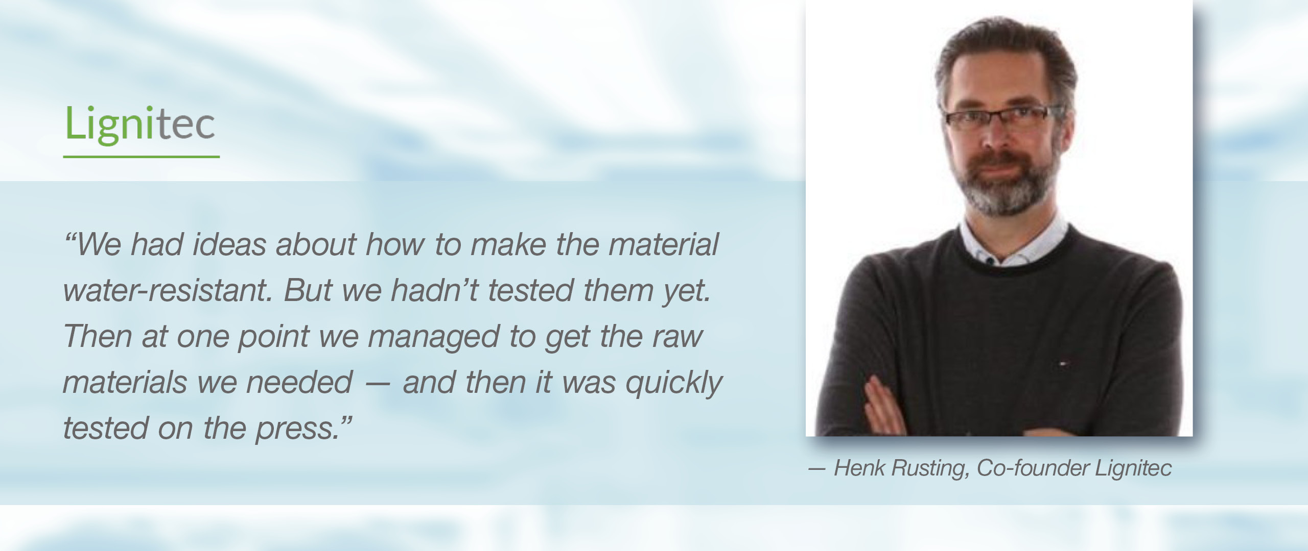 We can literally think of something — like ‘would this work, or that’ — and then immediately test with the press and improve it.Henk RustingCo-founder Lignitec